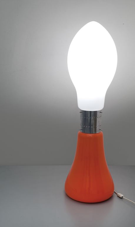 Lotto 4574 | UNA LAMPADA DA TERRA, anni "70. Acciaio cromato, vero incamiciato, vetro...