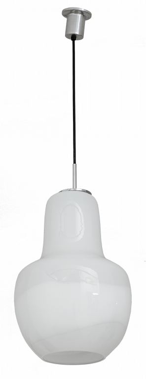 Acciaio cromato, vetro opalino, coppa a soffitto