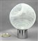 Metallo cromato, diffusore in cristallo soffiato con spirale bianca.