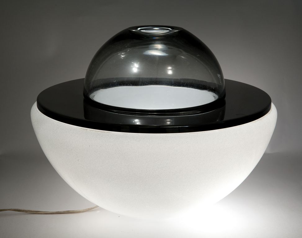 UNA LAMPADA DA TAVOLO CON VASO PORTAFIORI, anni "70. Vetro incamiciato,...