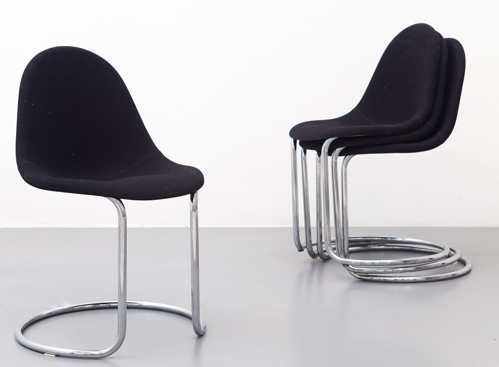 GIOTTO STOPPINO Quattro sedie impilabili "Maia" per BERNINI, 1969. Tubo di...