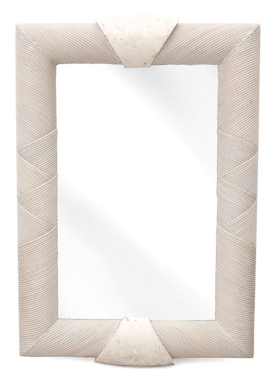 Lotto 4656 | UNO SPECCHIO DA PARETE, anni "80. Midollino verniciato e applicazioni di...