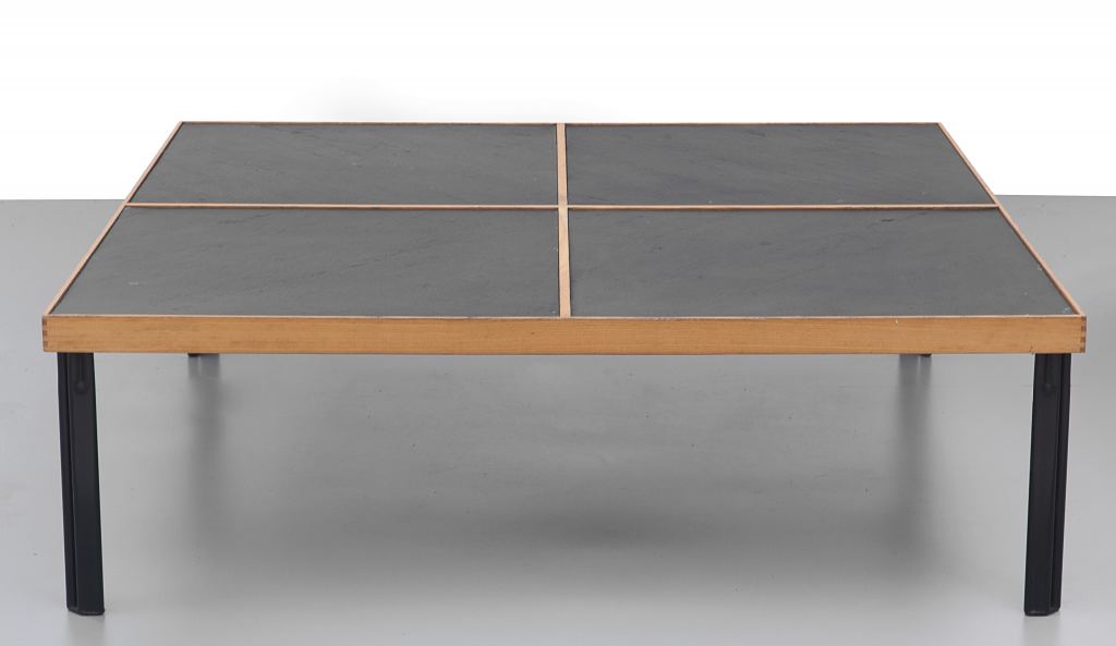 Acciaio verniciato, legno di frassino, ardesia.