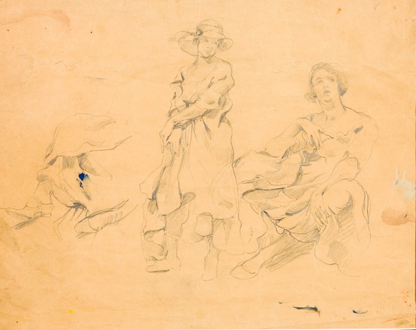 Giuseppe Rivaroli, Figure di donne, 1930' Matita su carta paglia, cm. 43x50...