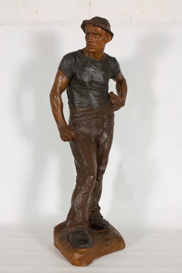 Friedrich Goldscheider, Pahl, Scultura in terracotta dipinta, cm. 89x34x31 Firma sulla base.