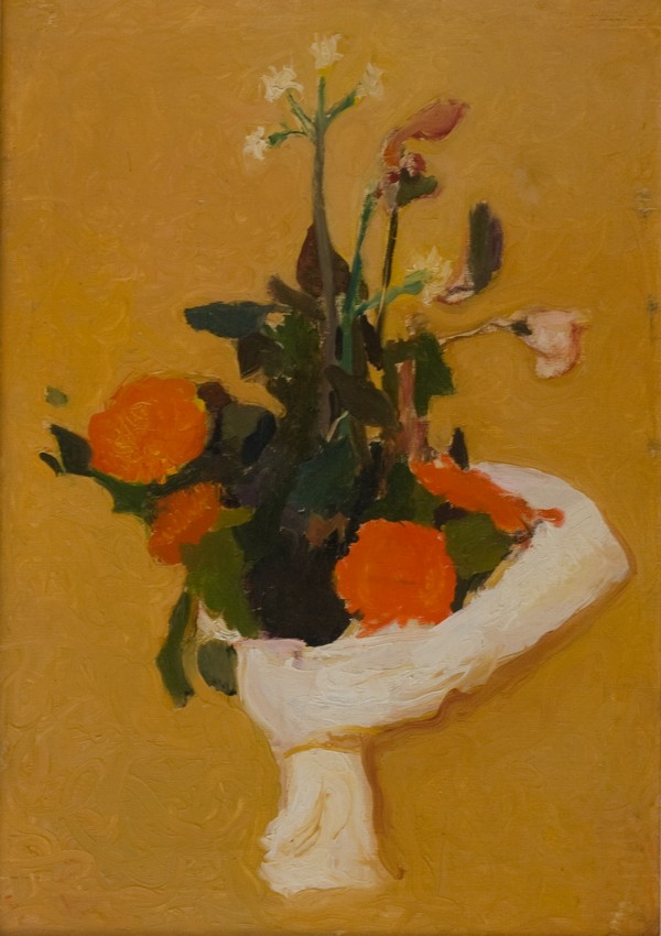 Carlo Quaglia, Fiori, 1950 Olio su tela, cm. 50x35 Dichiarazione di autenticità a cura di Costanza Quaglia sul retro. Etichetta a cura della Galleria Papier, Sabaudia sul retro.