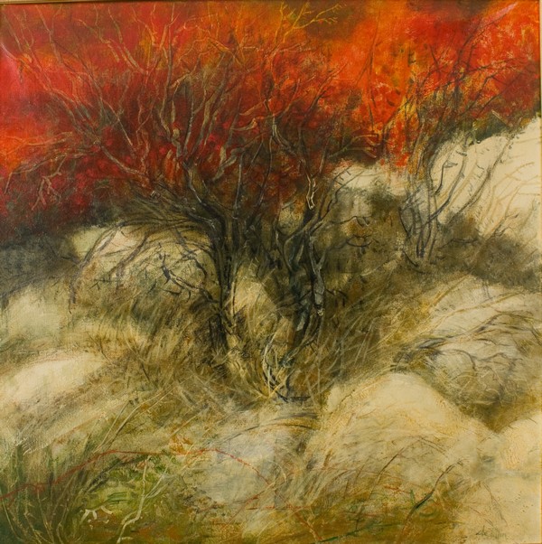Enrico De Cillia, Carso in autunno, 1981 Olio su tela, cm. 100x100 Firma in basso a destra.