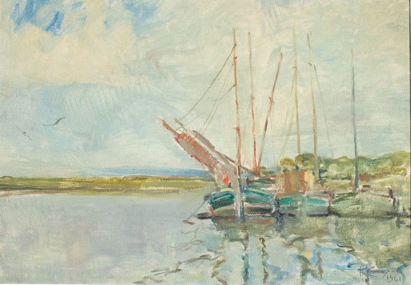 Antonio Coceani, Barche alla fonda, 1961 Olio su tela, cm. 70x100 Firma in basso a destra.