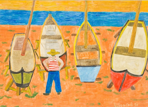 Luigi Spacal, Barche in spiaggia, 1950 Olio su tavola, cm. 30x40 Firma in basso a destra. Certificato di autenticità a cura del nipote Martin Spacal.