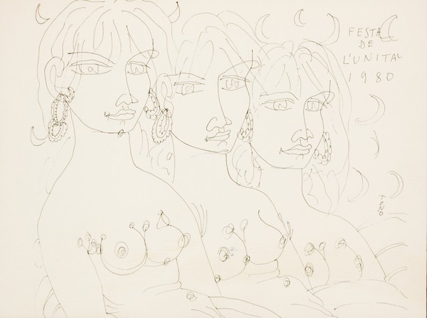 Tono Zancanaro, Festa de l'Unità 1981, 1980 China su carta, cm. 30x40 Firma...