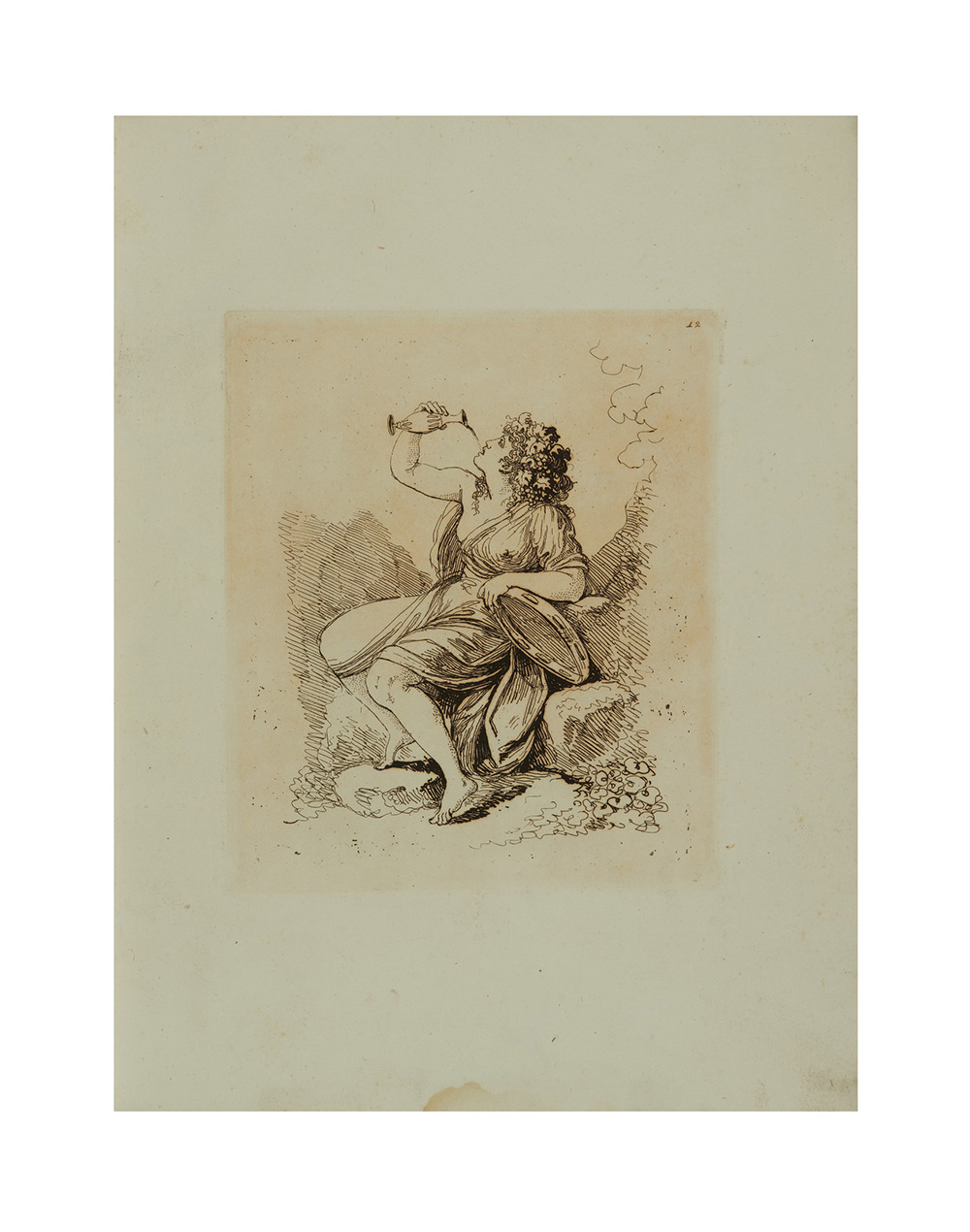 Strong impression of this collection of 13 plates dedicated to the Count of Bessbourough. Labruzzi experiments with a modern graphic process in order to resemble the effect of watercolour using etching and aquatint.
