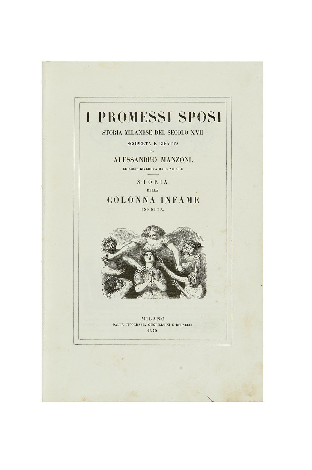 MANZONI, Alessandro (1785-1873) - I promessi sposi. Storia milanese del secolo XVII scoperta e rifatta da Alessandro Manzoni. Edizione riveduta dall'Autore. Storia della Colonna Infame inedita. Milan: Guglielmini e Redaelli, 1840.