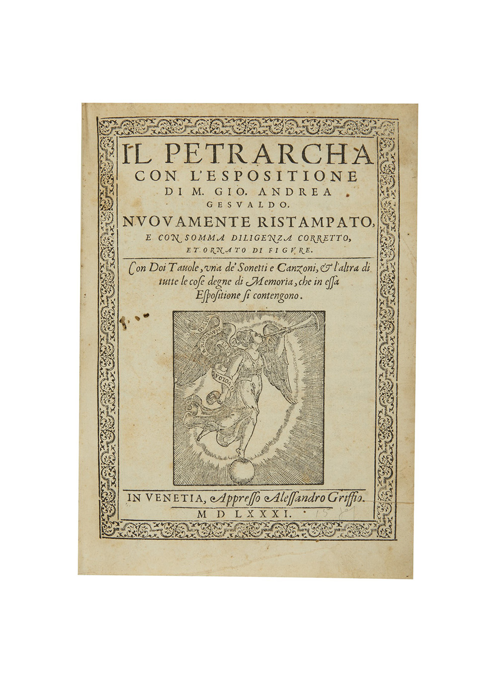 PETRARCA, Francesco (1304-1374) - Il Petrarcha con l'espositione di M. Gio. Andrea Gesualdo. Venezia: Alessandro Griffo, 1581-1582.