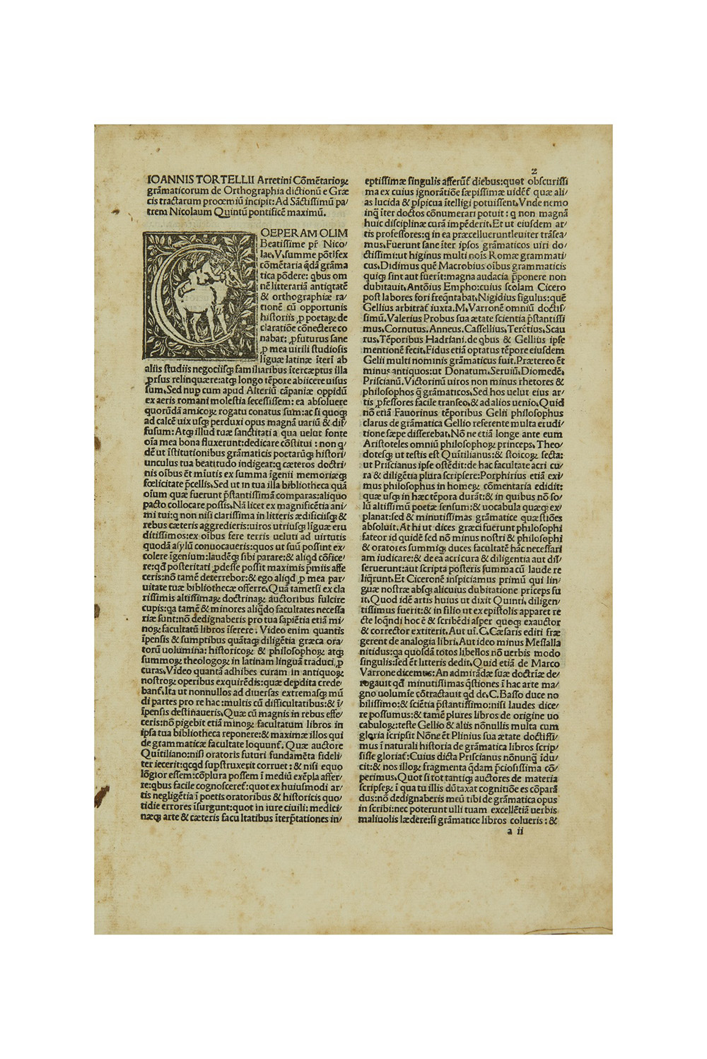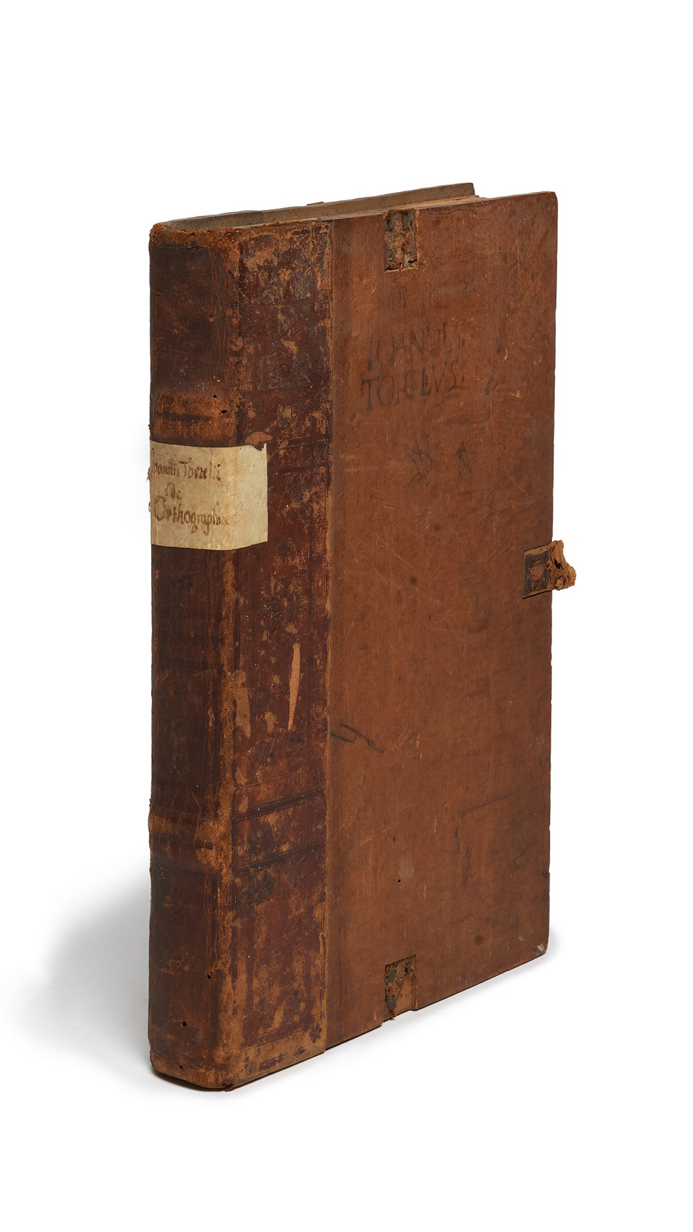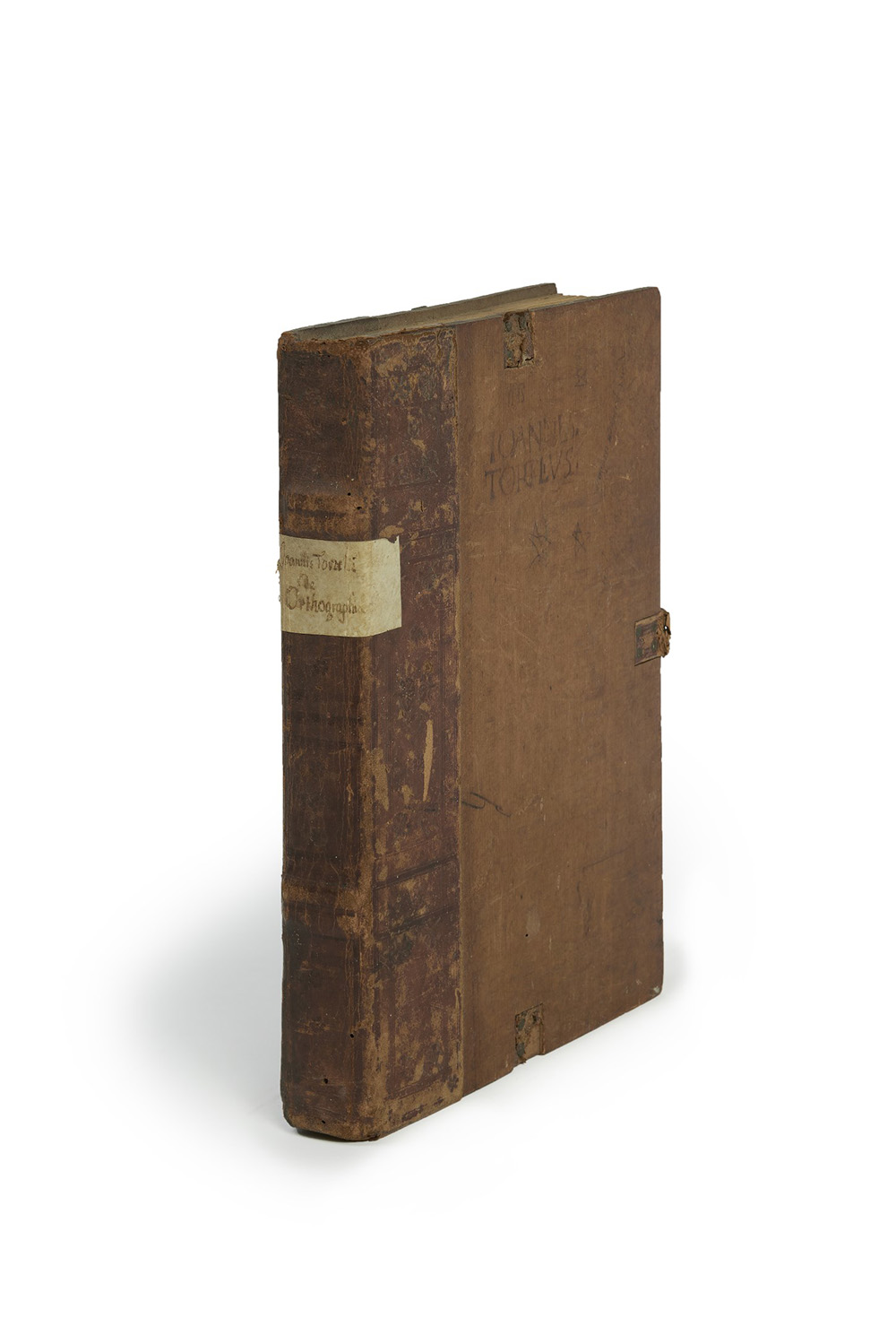 Bell'edizione in legatura coeva di un'opera sulla grammatica latina con particolare attenzione alle sue origini greche e all'ortografia che ne deriva. L'opera fu stampata per la prima volta a Roma nel 1471. Giovanni Tortelli da Arezzo fu un umanista alla corte di Papa Nicola V (1387-1455).