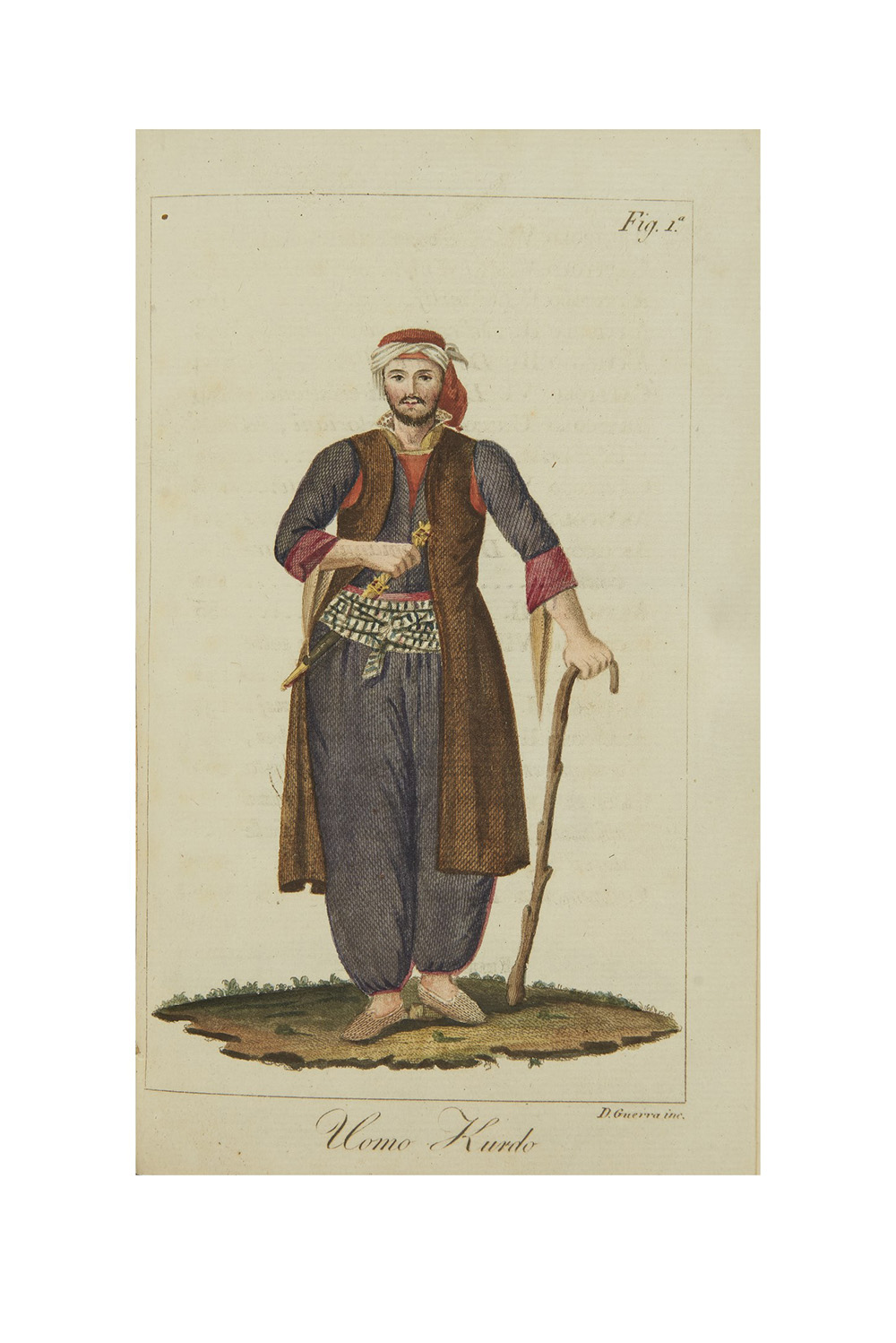 First edition of the first overview of the Kurdish region and about their customs. Complete with the 4 engraved plates handcoloured in a contemporary hand.