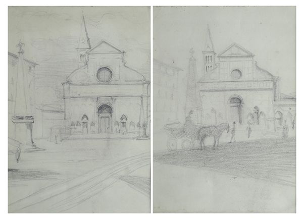 Anonimo, fine XIX sec. Piazza Santa Maria Novella Matita su carta, cm. 29x19 ciascuno Lotto unico di due disegni.