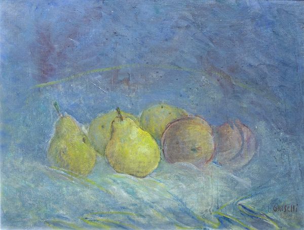 Italo Griselli (Montescudaio, 1880 - Firenze, 1958) Frutta sul panno, 1956...