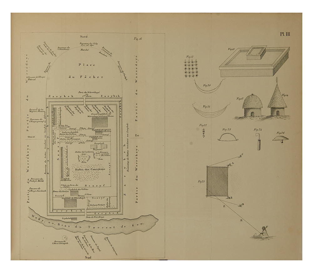 8vo (233 x 145mm). Occhiello, ritratto del sultano Abou Madian, 5 tavole e cartine litografiche ripiegate (piccolo strappo senza perdita alla prima tavola). Legatura moderna con dorso in pelle. Provenienza: piccola iscrizione a penna cancellata al frontespizio.