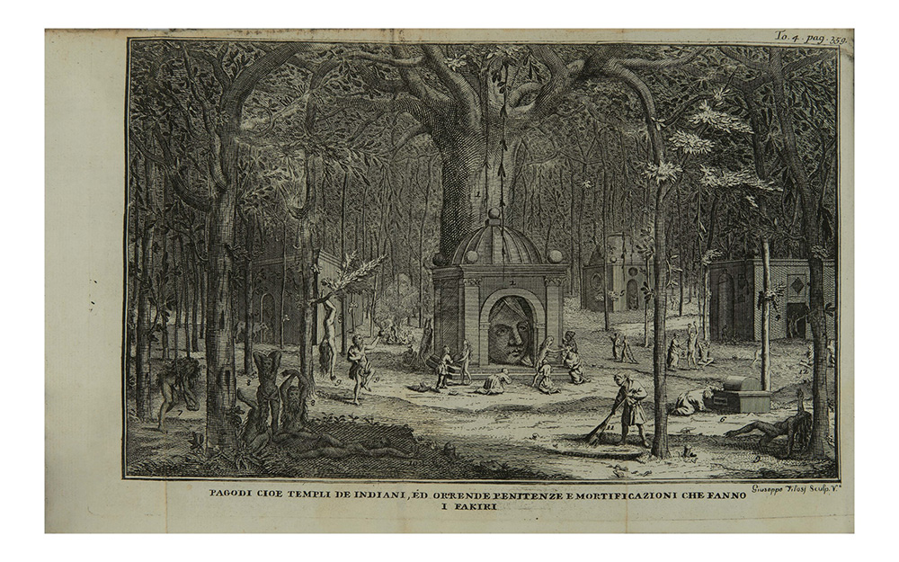 2 volumi ricchi di belle tavole incise in rame che comprendono vol. IV De i regni del Pegù, o Ava, Arrakan, Acham, o Asem; del vasto dominio del Gran Mogol, ch'è la vera India; delle isole di Ceylan, e di Mala, o Maldive e vol. VIII Dell'imperio della Moscovia o Russia; dei regni di Svezia di Danimarca, e Norvegia; e della Groenlandia.