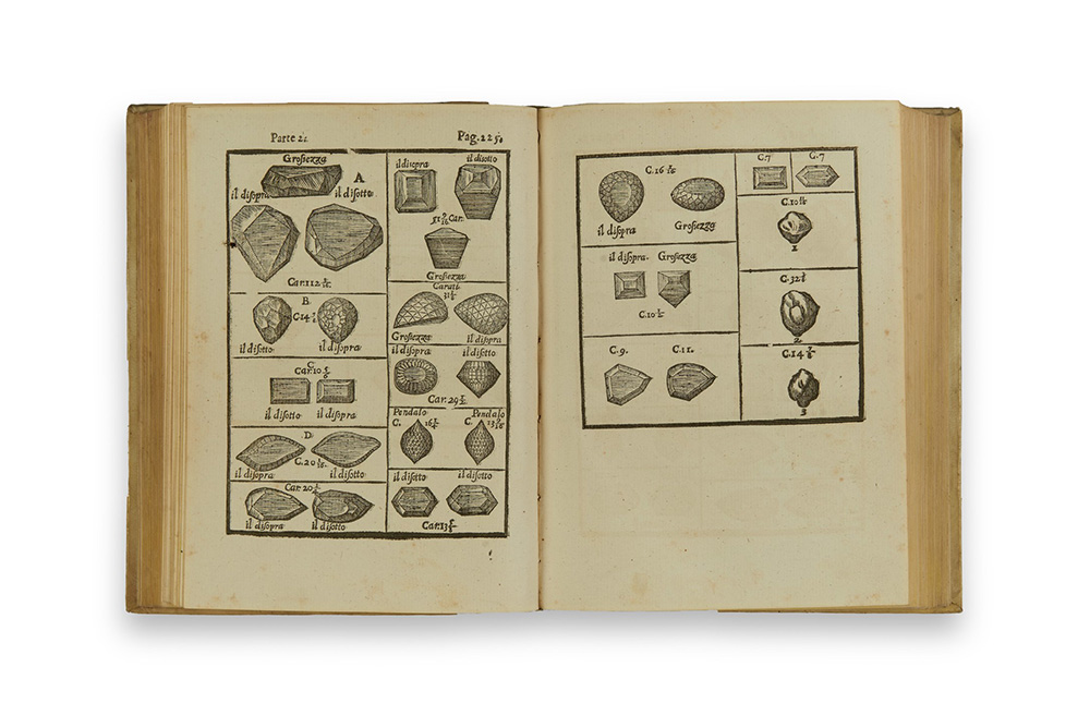 3 parti in 2 volumi, 4to (217 x 162mm). Occhiello, marche tipografiche, stemma araldico inciso in rame e 7 tavole incise in legno raffiguranti pietre preziose e un cobra (occasionali lievi bruniture e fioriture). Pergamena posteriore, titolo in oro impresso al dorso. Provenienza: Lodovico Batalasi (nota di possesso). (2)