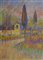 Dino Migliorini (Rignano sull'Arno, 1907 - Firenze, 2005) Tabernacolo con cipressi Olio su masonite, cm. 70x50 Firma in basso a sinistra e al verso.