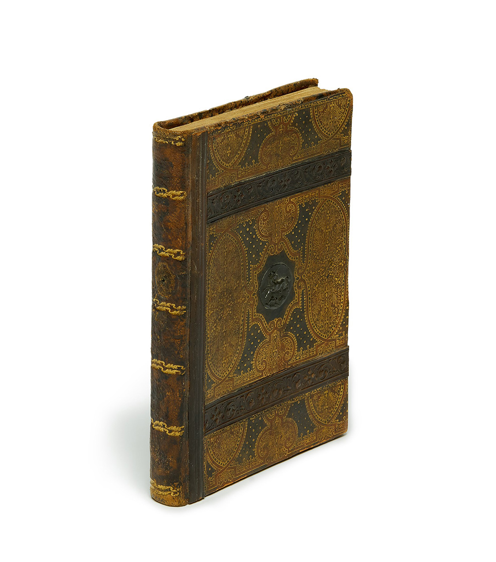 Manuscripts on paper (ll. I, 94); 182 x 125mm). Calligraphic script imitating that of the "umanistica libraria". Collation 1 (4), 2 (8), 3 (4), 4 (8), 5 (4), 6 (8), 7 (6), 8 (4), 9 (8), 10 (4), 11 (8), 12 (4), 13 (8), 14 (4), 15 (8), 16-17 (2). Lines in pencil; lines. 28/ll.28. Contemporary pagination in Arabic numbers from l. 11recto (pp. 1-167). Red ink for the text and gilt for the titles. Early calf richly decorated in gilt, on front panel a horse (recent restorations).