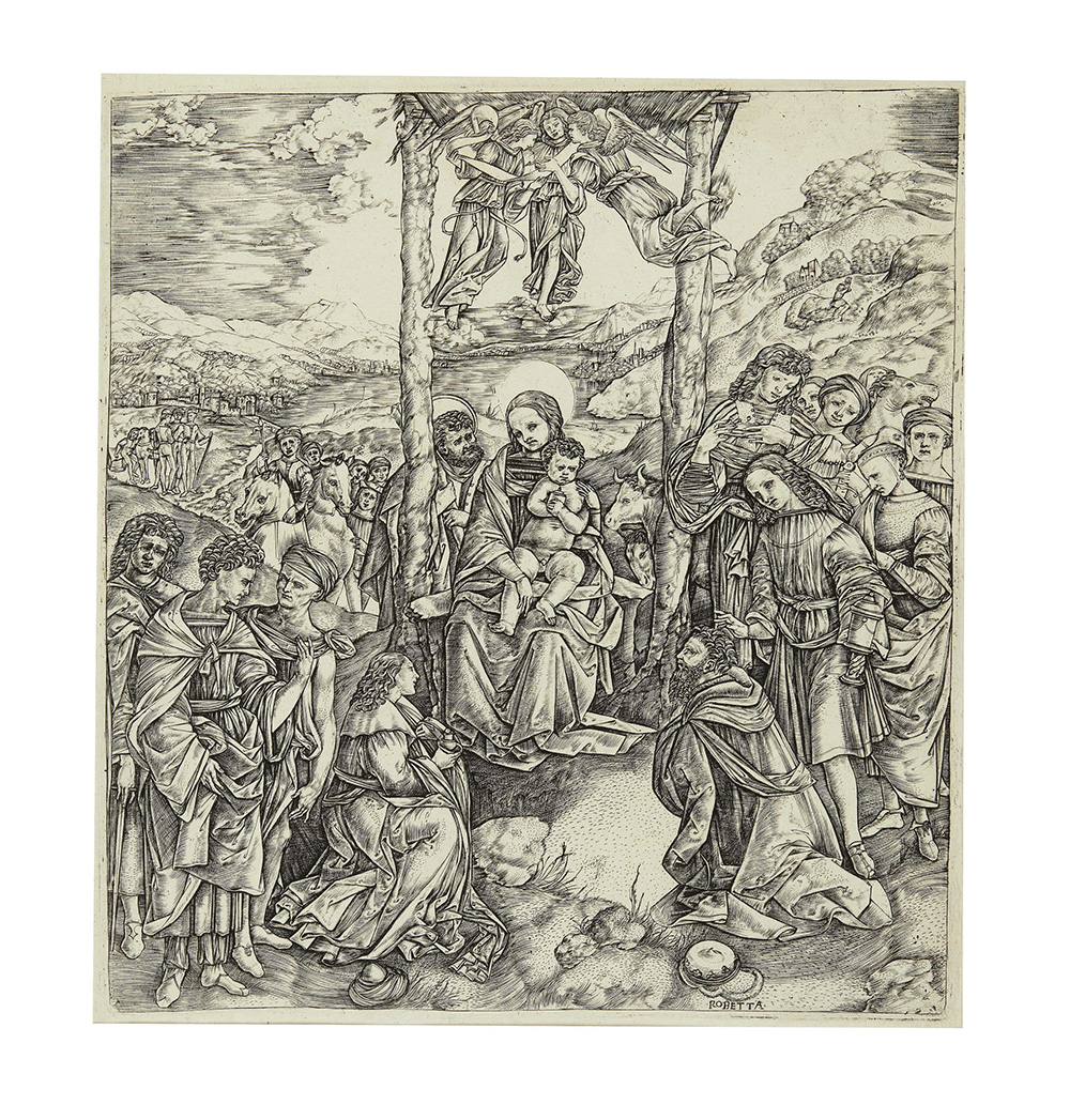 A fine impression signed on plate. (400 x 290mm sheet; 310 x 280mm engraving). Hind, A.M. Early Italian Engraving. London, 1948, vol. 1, p. 201, no. 10 and vol. 3, pl. 276.