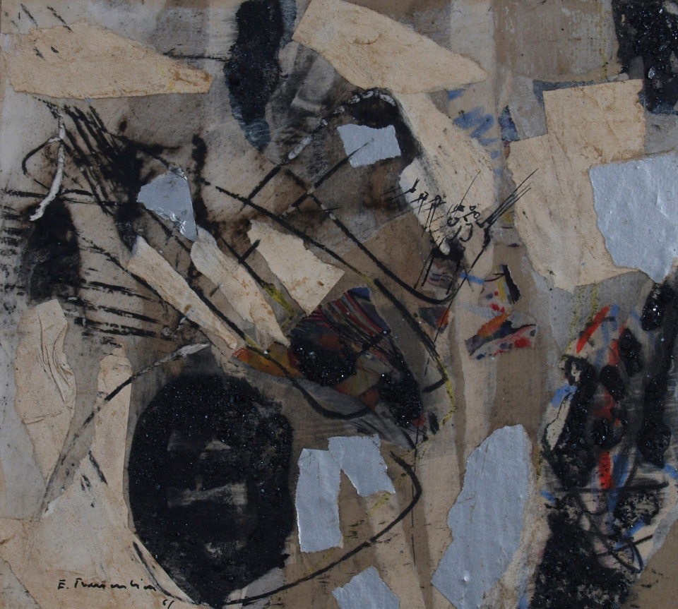 "Senza titolo" 1961 Tecnica mista e collage su tavola cm. H: 26.00 L: 29.00 Firma ed anno in basso sinistra. Provenienza : Finarte (Milano)