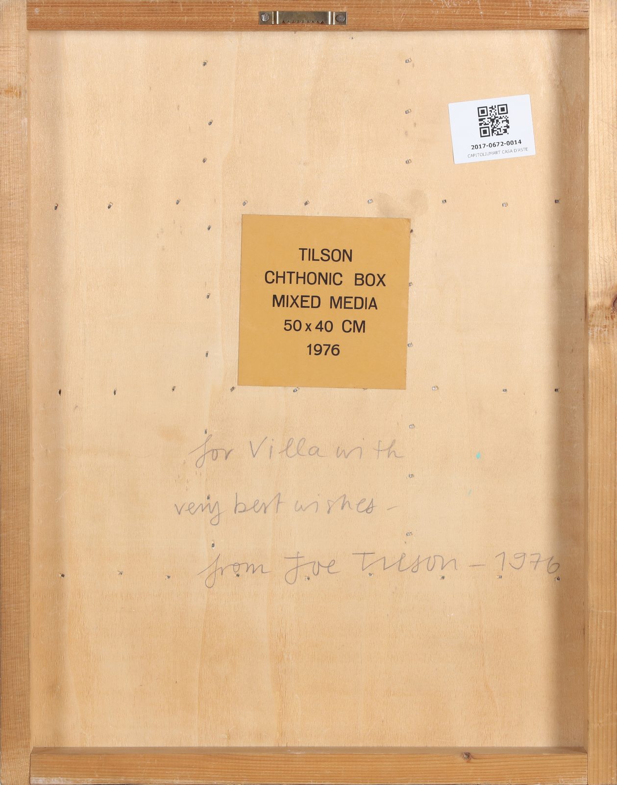 TILSON JOE (n. 1928) Chtonic Box. 1976. Wood. Cm 40,00 x 50,00 x 5,50. Unique piece. At the back dedication, signature, title and year. Sam Villa, Serigrafia d'Arte Visam, Muggio (MI) authenticity certificate.