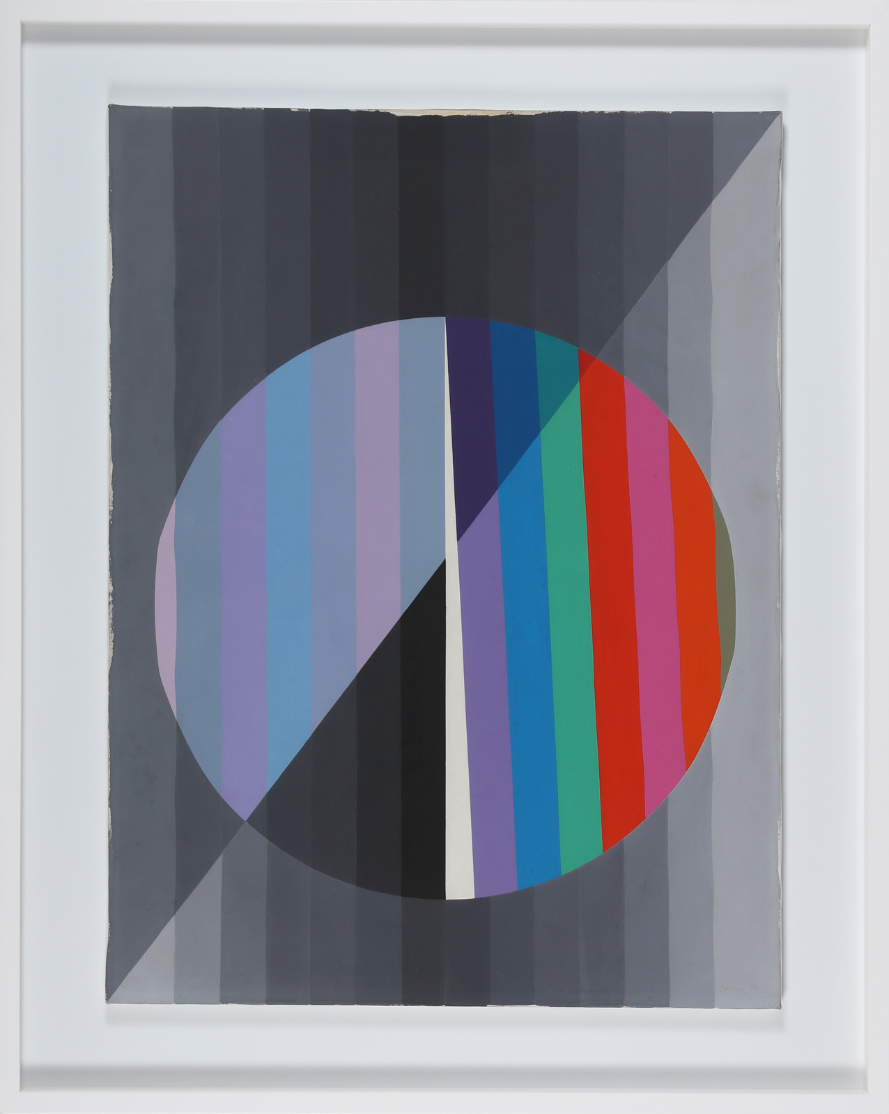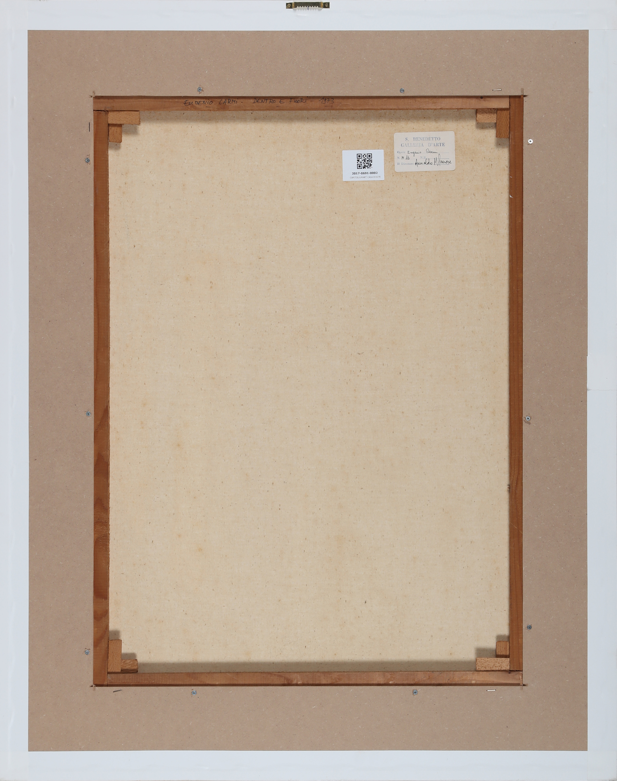 CARMI EUGENIO (n. 1920) Inside and outside. 1973. Acrylic on canvas . Cm 80,00 x 60,00. At the back San Benedetto Gallery. Pubblication: Eugenio Carmi, a landscape painting? by Umberto Eco, Giampaolo Prearo Edito, Milan, 1973, p112. Cornice presente