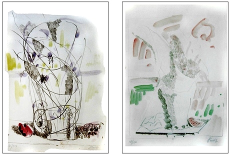 GASTONE BREDDO Padova 1915 – Calenzano 1991 Lotto di 2 opere Senza titolo Litografia acquerellate a mano. Firma in b. a d. (50 x 35 foglio e lito.) Senza titolo Litografia acquerellate a mano. Firma in b. a d. (50 x 35 foglio e lito.) B.A.: 50