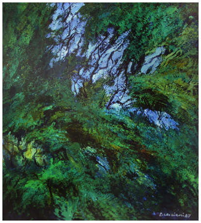 VIRIO BRESCIANI Pietrasanta 1925 – Pietrasanta 2000 Bosco verde 1987 Olio su tela 79 x 71. Firma e data in b. a d.; sul verso titolo, firma e data. B.A.: 150