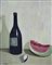 Guido Peyron (Firenze, 1898 - 1960) Bottiglia con anguria e conchiglia, 1937 Olio su compensato, cm. 47,5x39,5 Firma e data in basso a sinistra. Bibliografia: F. Cagianelli, I fantasmi di Guido Peyron, ritratti come nature morte, Edizioni Pananti, Firenze, 2003, p. 68, ripr. (erroneamente descritto come "Olio su tela").