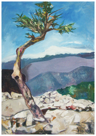 ILIO FIORINI Livorno 1913 – Livorno 1996 Senza titolo Olio su tela 50 x 35. Firma in b. a d.; sul verso timbro galleria La Saletta, Livorno. B.A.: 50