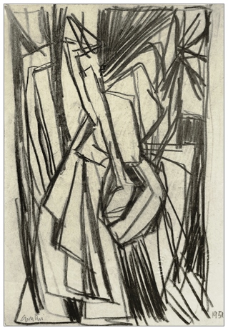 GUALTIERO NATIVI Pistoia 1921 – Greve in Chianti 1999 Senza titolo 1951 Grafite su carta 21 x 14,5. Firma in b. a s., data in b. a d. Autentica e num. arch. Archivio Gualtiero Nativi, Fiesole con firma Berto Nativi su foto. B.A.: 250