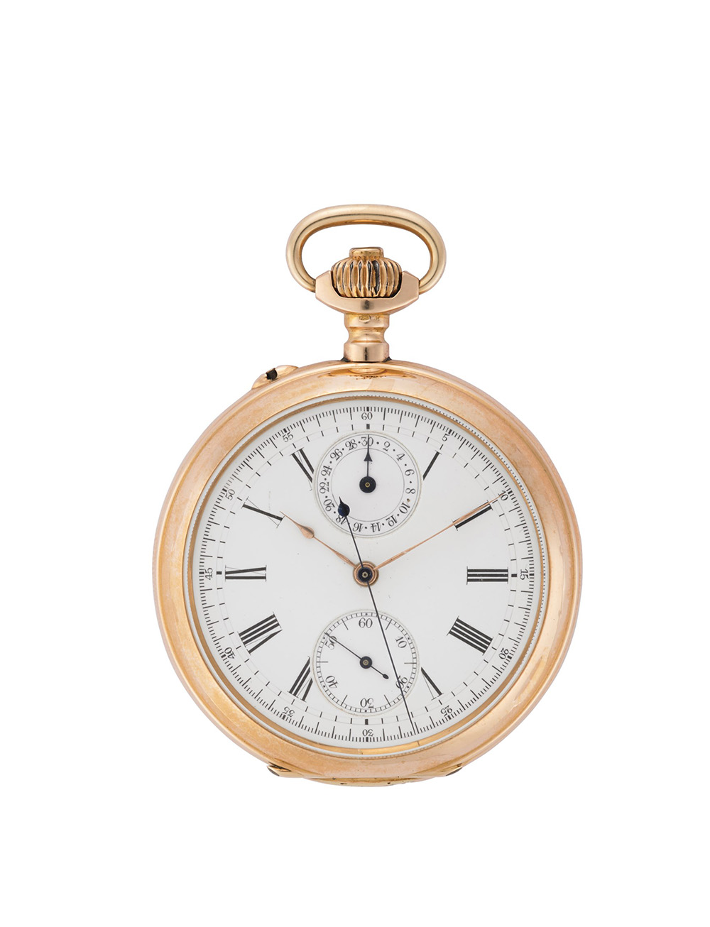 ANONIMO, CRONOGRAFO Orologio da tasca da uomo in oro 18KEpoca inizio sec....