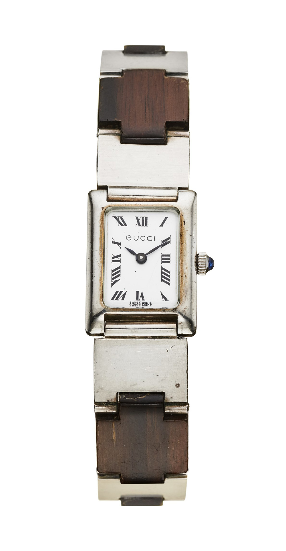 GUCCIOrologio da polso da donna in argento e legnoAnni '90Quadrante e cassa...