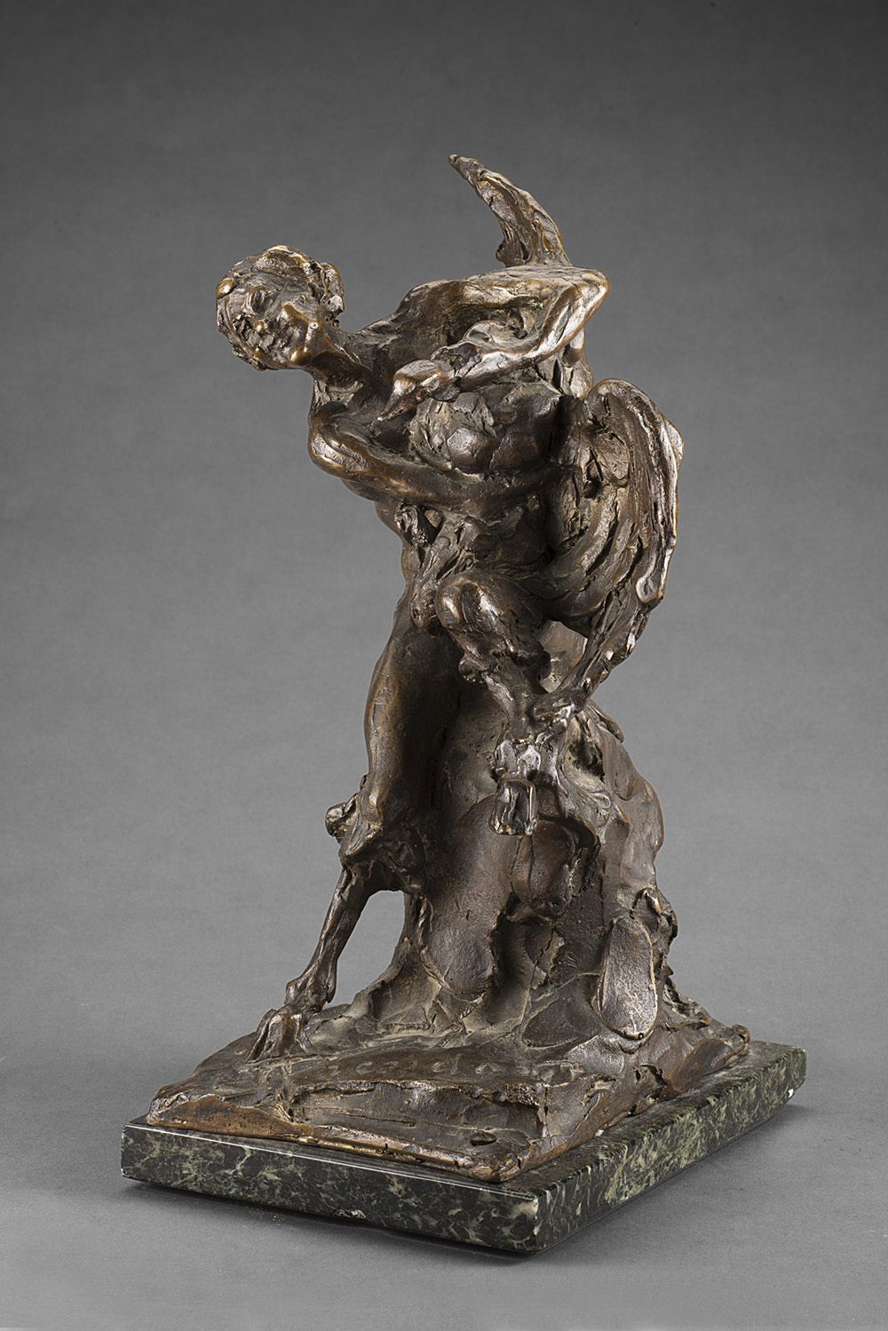 Attilio Prendoni (Milano 1874 - 1942)"Satiro con cigno" scultura in bronzo (h...