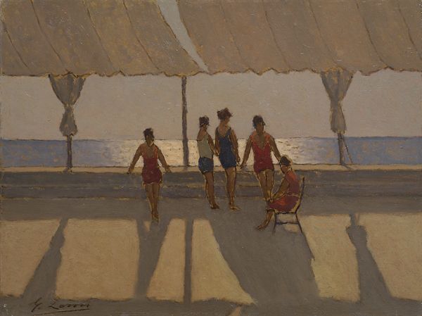 Giovanni Lomi (Livorno, 1889 - 1969) Bagnanti Olio su masonite, cm. 30x40 Firma in basso a sinistra. Sul verso timbro e etichetta della collezione Vingili Gino.