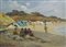 Carlo Domenici (Livorno, 1898 - 1981) Sulla spiaggia Olio su compensato, cm. 50x70 Firma in basso a destra. Sul verso timbro e firma Studio Conti, Livorno.