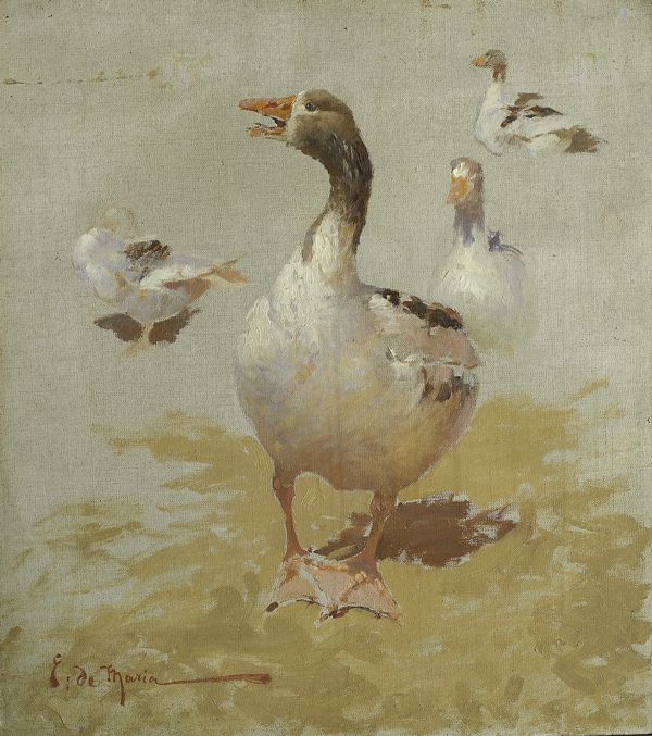 Ettore De Maria Bergler (Napoli, 1850 - Palermo, 1938) Oche Olio su tela, cm....