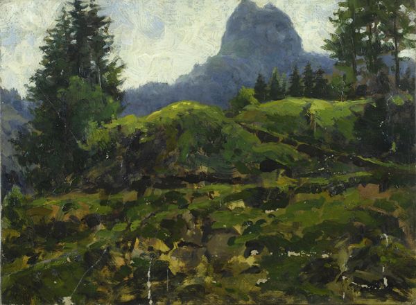 Lotto 411 | Guglielmo Ciardi (Venezia, 1842 - 1917) Paesaggio alpino Olio su tela, cm....