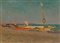 Ruggero Focardi (Firenze, 1862 - Quercianella, 1934) La spiaggia del Forte de' Marmi, 1925 Olio su tavola, cm. 28,5x39 Firma e data in basso a destra. Sul verso: firma e titolo di mano dell'artista; antichi cartellini ed etichette con numeri di riferimento.