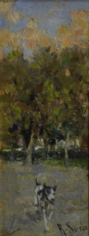 Raffaello Sorbi (Firenze, 1844 - 1931) L'amico fedele Olio su cartone, cm....