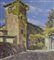 Ludovico Tommasi (Livorno, 1866 - Firenze, 1941) La vecchia torre Olio su tavola, cm. 63x70 Firma in basso a destra. Sul verso: dedica con firma dell'autore.