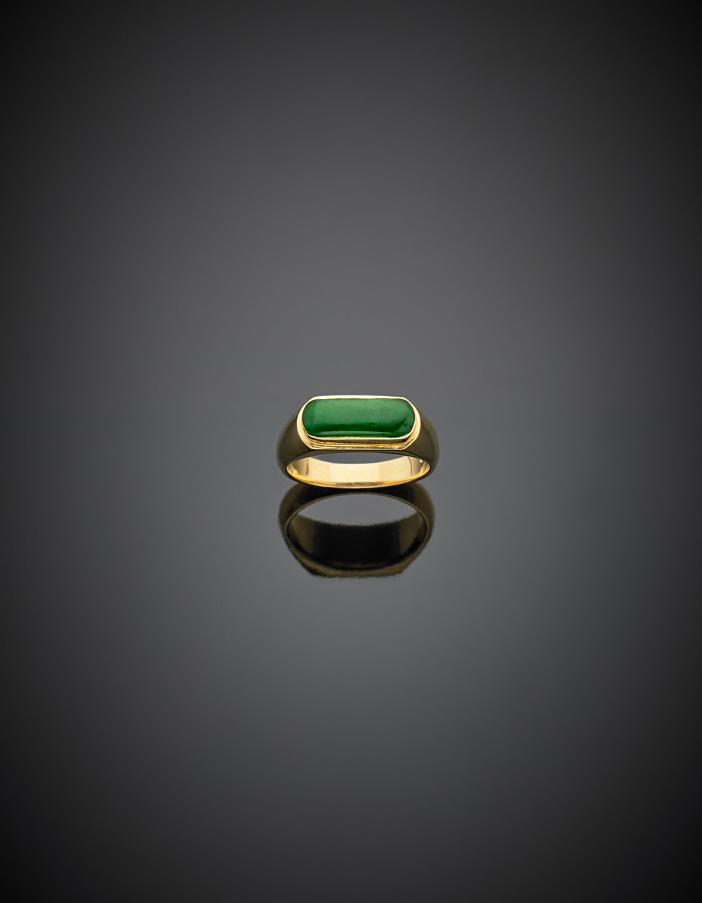 Anello in oro giallo con giadeite verde g 6,50 misura 14/54.