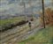 Ulvi Liegi (Livorno, 1858 - 1939) Paesaggio con gregge Olio su tela riportata su cartone, cm. 22x27,5 Firma in basso a destra e a sinistra; sul verso: "Ulvi Liegi, Colline Livorno, Ottobre 1932".