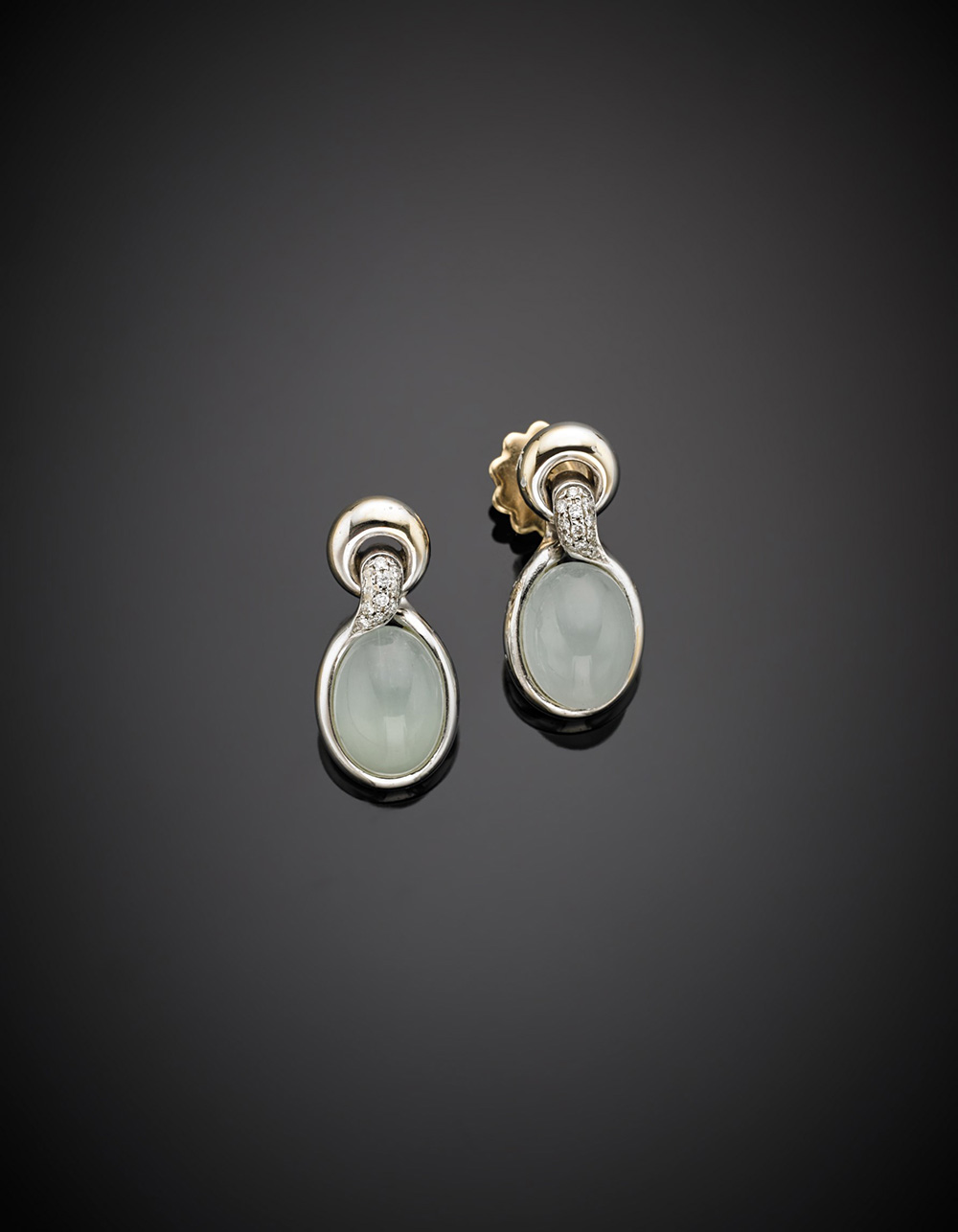 Lotto 1537 | Orecchini a lobo in oro bianco e due calcedoni azzurro tenue, g 14,64....