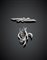 Lotto di due spille in oro bianco lucido e satinato di forme e dimensioni diverse, entrambe rifinite con diamanti, complessivi g 14,30.