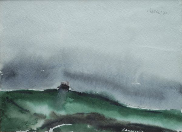 Walter Piacesi (Ascoli Piceno, 1929) Casa sulla collina, 1972 Acquerello su cartoncino, cm. 35x48 Firma e data in alto a destra.